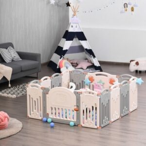 Foldable Baby Playpen 14 Panel Activity Center Safety Play Yard-Beige – Color: Beige