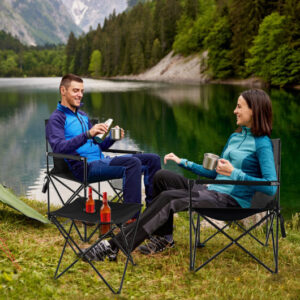 Outdoor Folding Camping Chairs and Table Set with Carrying Bag-Black – Color: Black