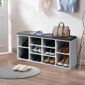 10-Cube Organizer Shoe Storage Bench with Cushion for Entryway-White – Color: White