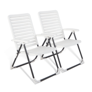 2 Pieces PP Folding Patio Chaise Lounger with 7-Level Backrest – Color: White