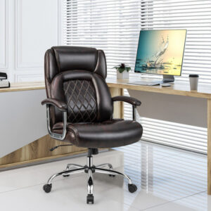 Height Adjustable Big and Tall Office Chair Computer Desk Chair with Metal Base-Brown – Color: Brown