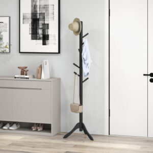 Adjustable Wooden Tree Coat Rack with 8 Hooks-Black – Color: Black